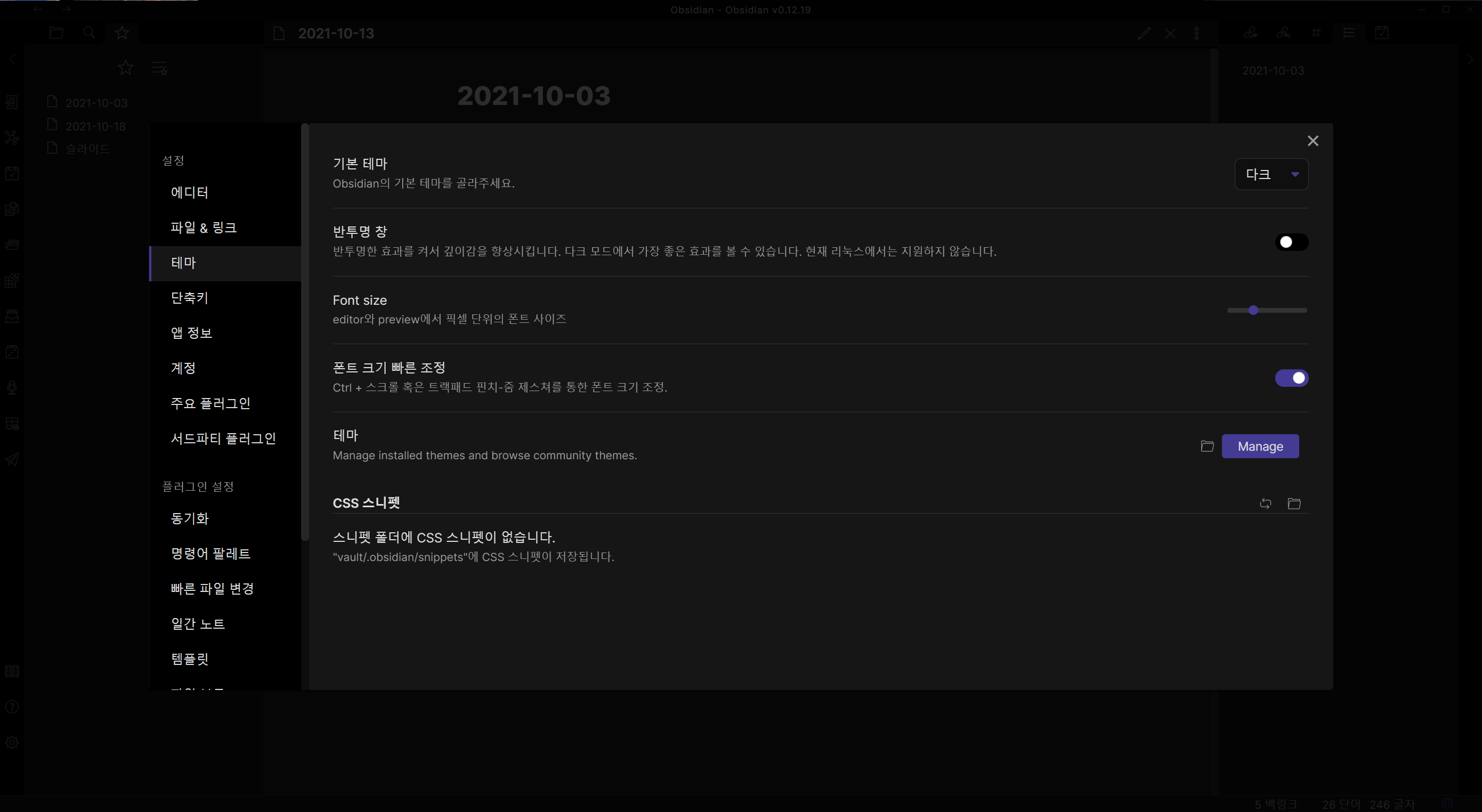Obsidian 옵시디언, 테마와 CSS 변경해서 예쁘게 사용하기