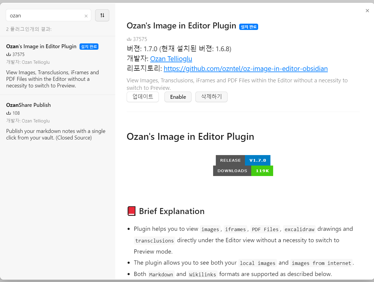Ozan's Image in Editor Plugin은 편집모드에서 이미지, PDF, iframe, Excalidraw 파일을 바로 볼 수 있도록 하는 플러그인 입니다. 설정 가장 아래에 WYSIWYG like experience 메뉴를 활성화시키면 다른 마크다운 규칙이 서식이 적용된 것을 확인할 수 있습니다.