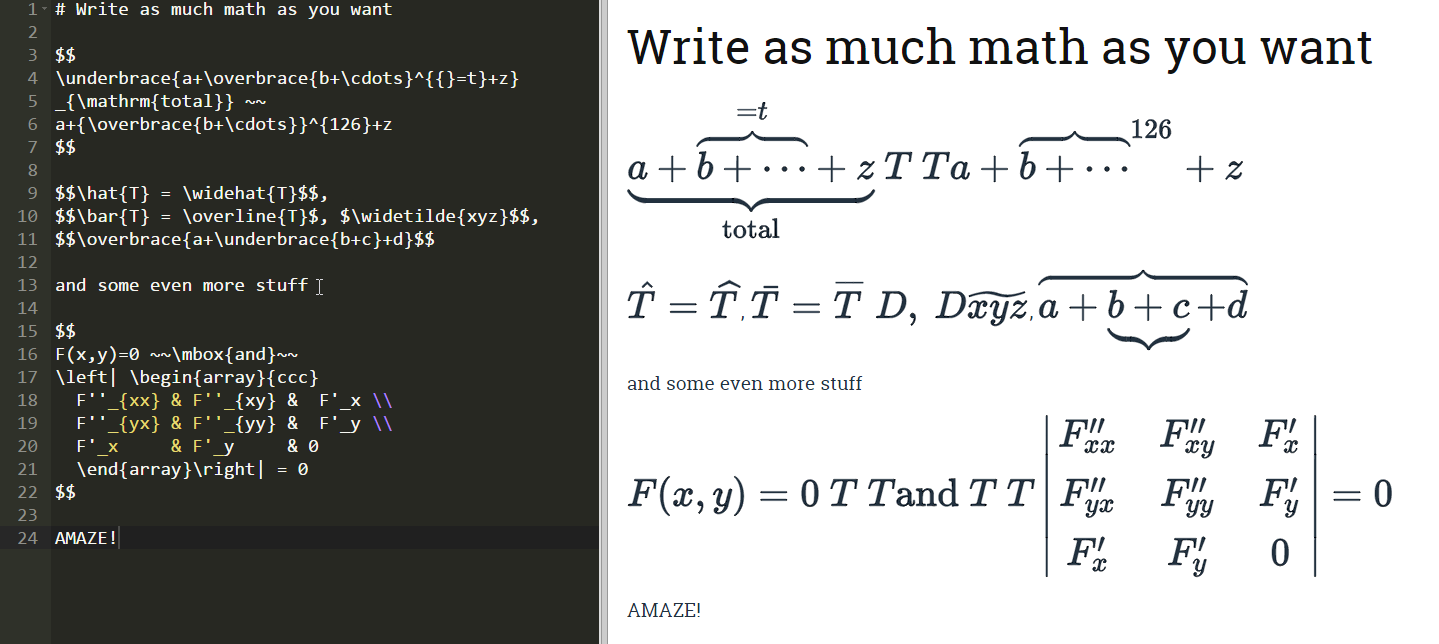 그 아래에 동작하는 방식은 다음과 같습니다. 마크다운의 규칙을 HTML 태그 문법에 대응시키는 것입니다. 예를 들어 # 는 제목을 쓰는 마크다운 규칙입니다. # 제목 으로 쓰게 된다면 HTML로 렌더링 했을때 <h1>제목</h1>으로 바뀌게 되는 것입니다. 따라서 우리가 보는 웹페이지의 대부분은 마크다운으로 쓸 수 있습니다. 하지만 마크다운의 간결함은 편하지만 서식이나 기능이 아쉬운 사람들이 계속해서 추가적인 기능들을 붙이게 되면서 훨씬 더 다양하게 사용할 수 있게 만들었습니다. 하지만 복잡한 기능들이 오히려 마크다운을 어렵게 만든 원인이지 않을까 싶습니다.