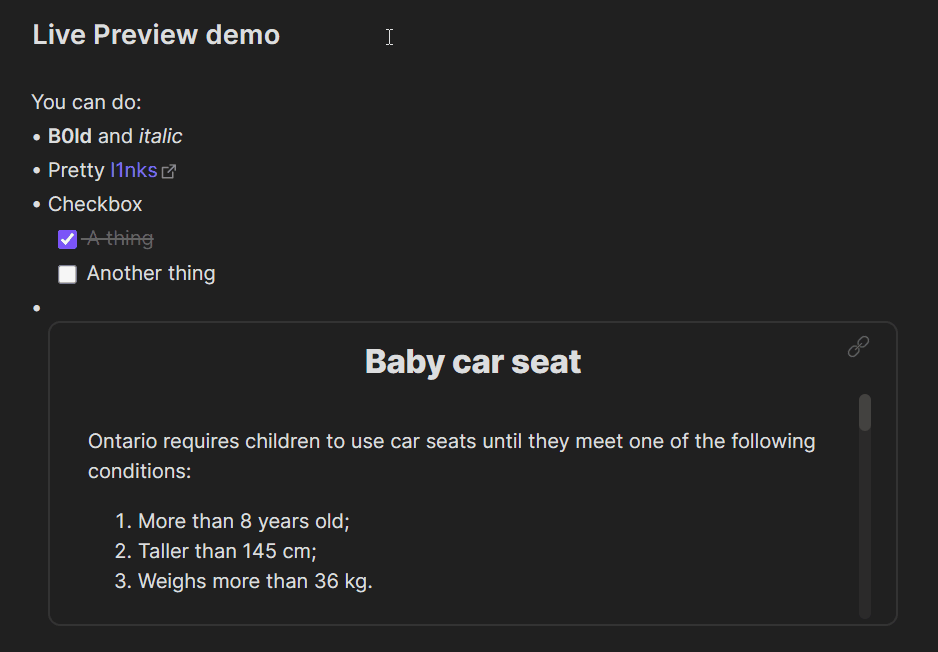 이 포스팅은 전반적인 마크다운에 관한 내용도 담고 있어 옵시디언의 Live Preview 모드를 쓰는데 참고할 수 있습니다!