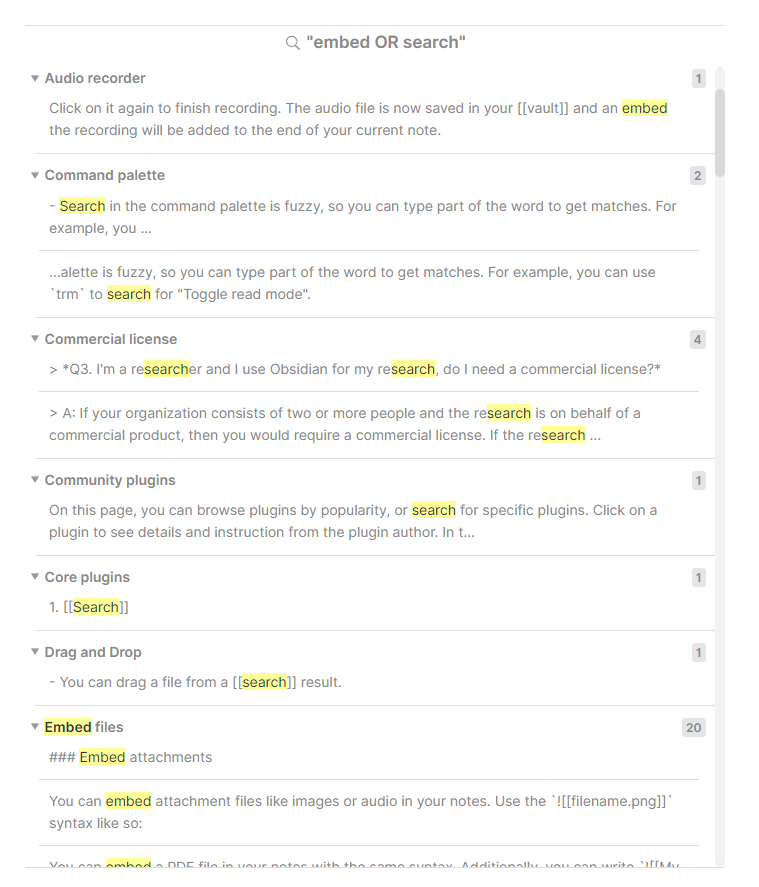 Obsidian 옵시디언, 검색 기능(Search)