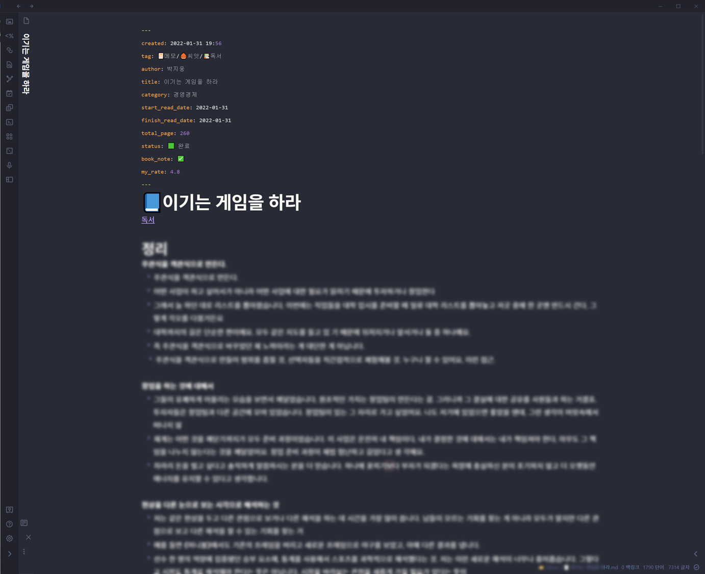 Obsidian 옵시디언, 독서노트/독서기록 템플릿