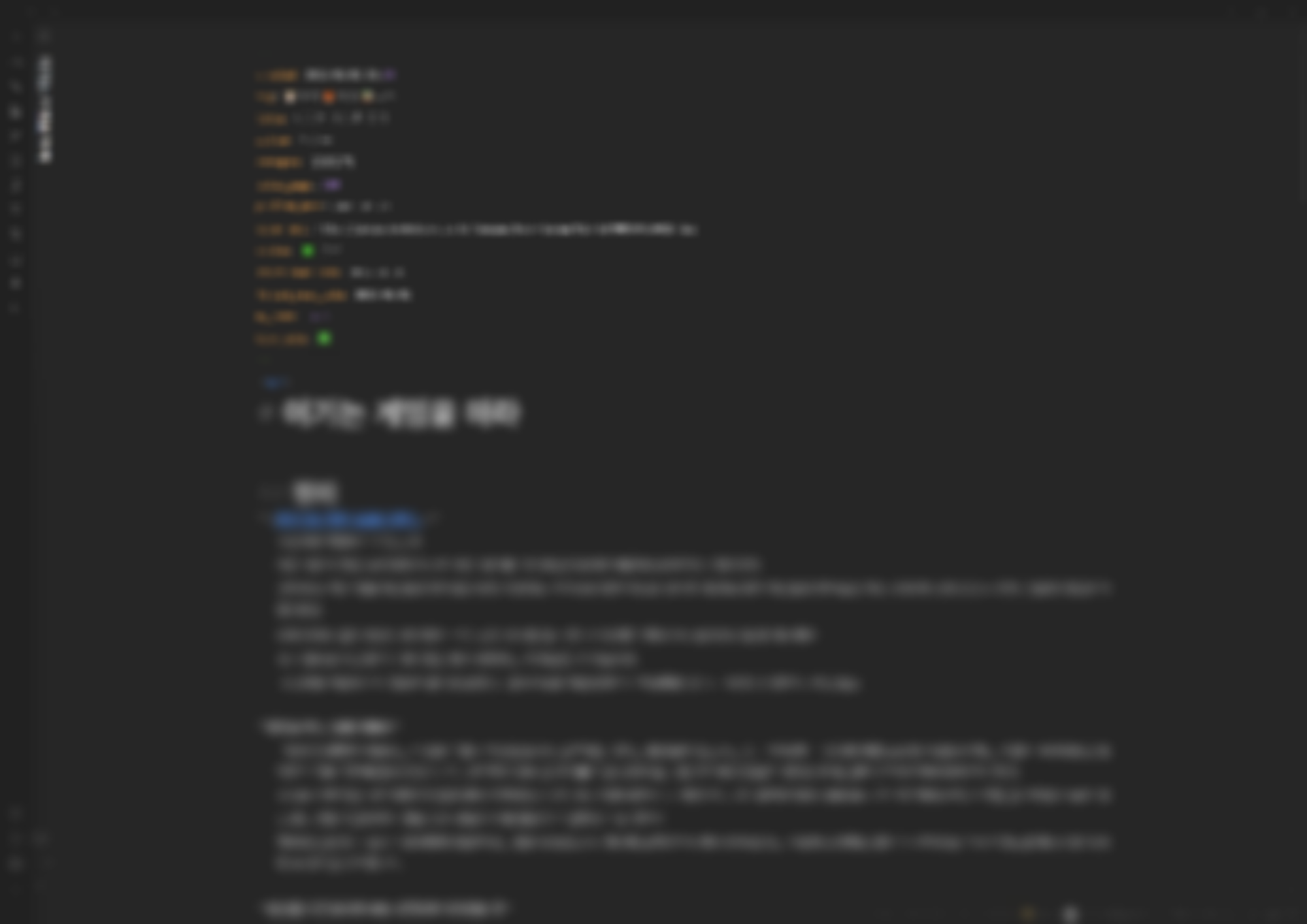 총 13가지의 책에 대한 정보를 프론트매터를 이용해서 입력했습니다. 이는 저에게 맞는 방식이며 각자 원하는 것들을 추가로 넣을 수 있습니다. 프론트매터에 넣는 이유는 모든 독서 노트에 동일하게 들어가는 내용들 위주로 적고 항상 가장 상단에 노트에 대한 정보를 적는 것이기 때문에 통일감 때문이라고 말할 수 있습니다.