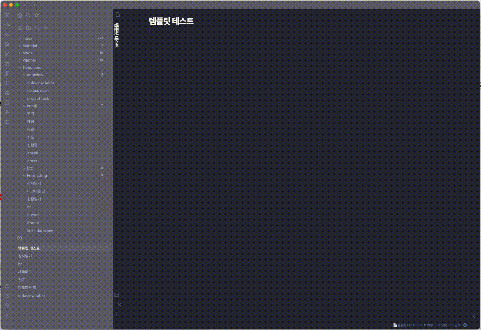 템플릿이라는 것을 완전하게 구성된 노트로만 생각하지 않고 추가할 수 있는 문구라고 생각하시고 자신만의 자주 사용하는 문구를 템플릿 노트로 만들어서 옵시디언을 더욱 잘 활용해보세요.그리고 템플레이터의 핫 키를 이용해서 단축키를 활용하는 방법도 다음에 포스팅하도록 하겠습니다.