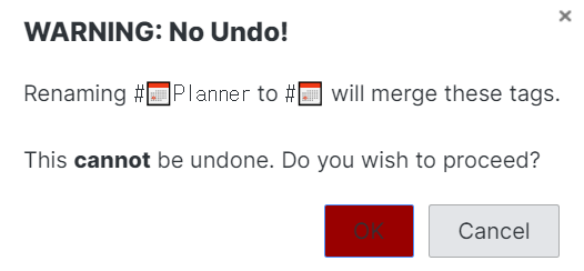 주의할 점은 한번 태그를 바꾸면 다시 원상복구를 할 수 없다는 점입니다. 따라서 태그 2개를 1개로 합치는 작업을 할 때 주의해야합니다. 다시 2개로 되돌릴 수 없기 때문입니다.