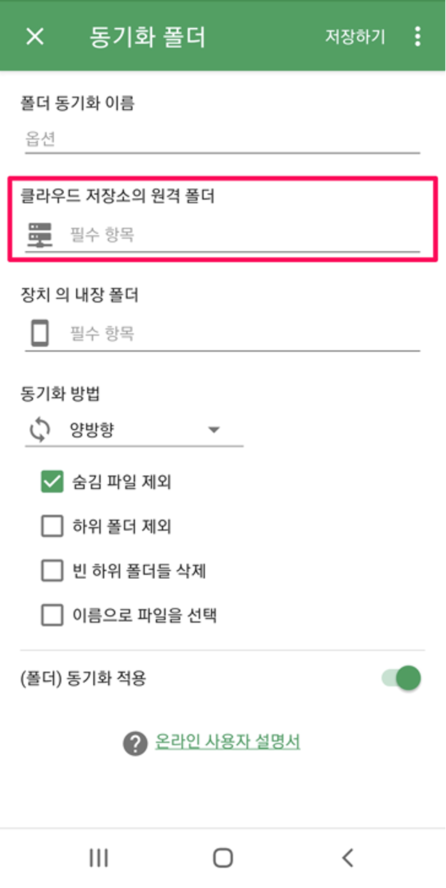3.1 폴더 동기화 이름을 입력합니다. (Autosync 앱에서 보여지는 이름입니다.)