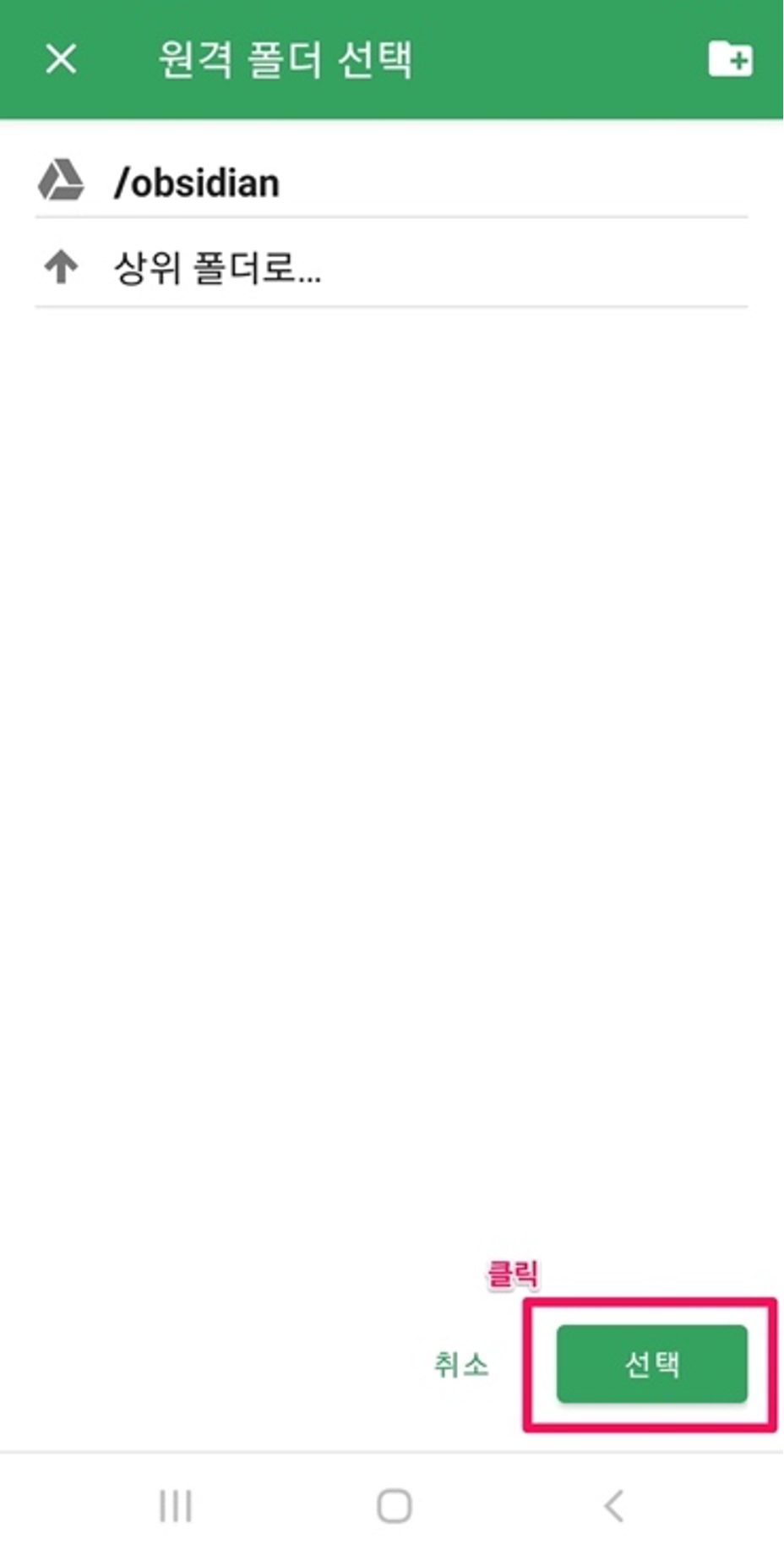 3. 구글 드라이브 내 폴더와 모바일 로컬 저장소의 폴더를 각각 선택하여 연결합니다.