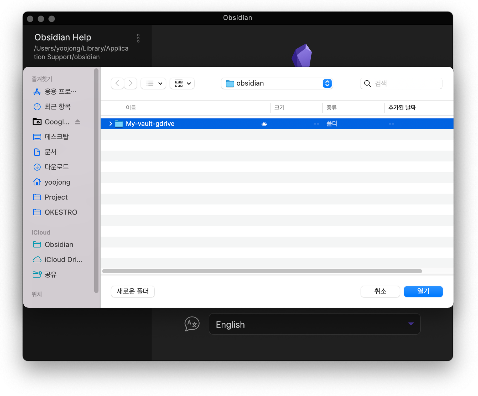 옵시디언 어플에서 생성한 노트(구글 드라이브)가 구글 드라이브 폴더 내에도 생성된 것을 확인할 수 있습니다.