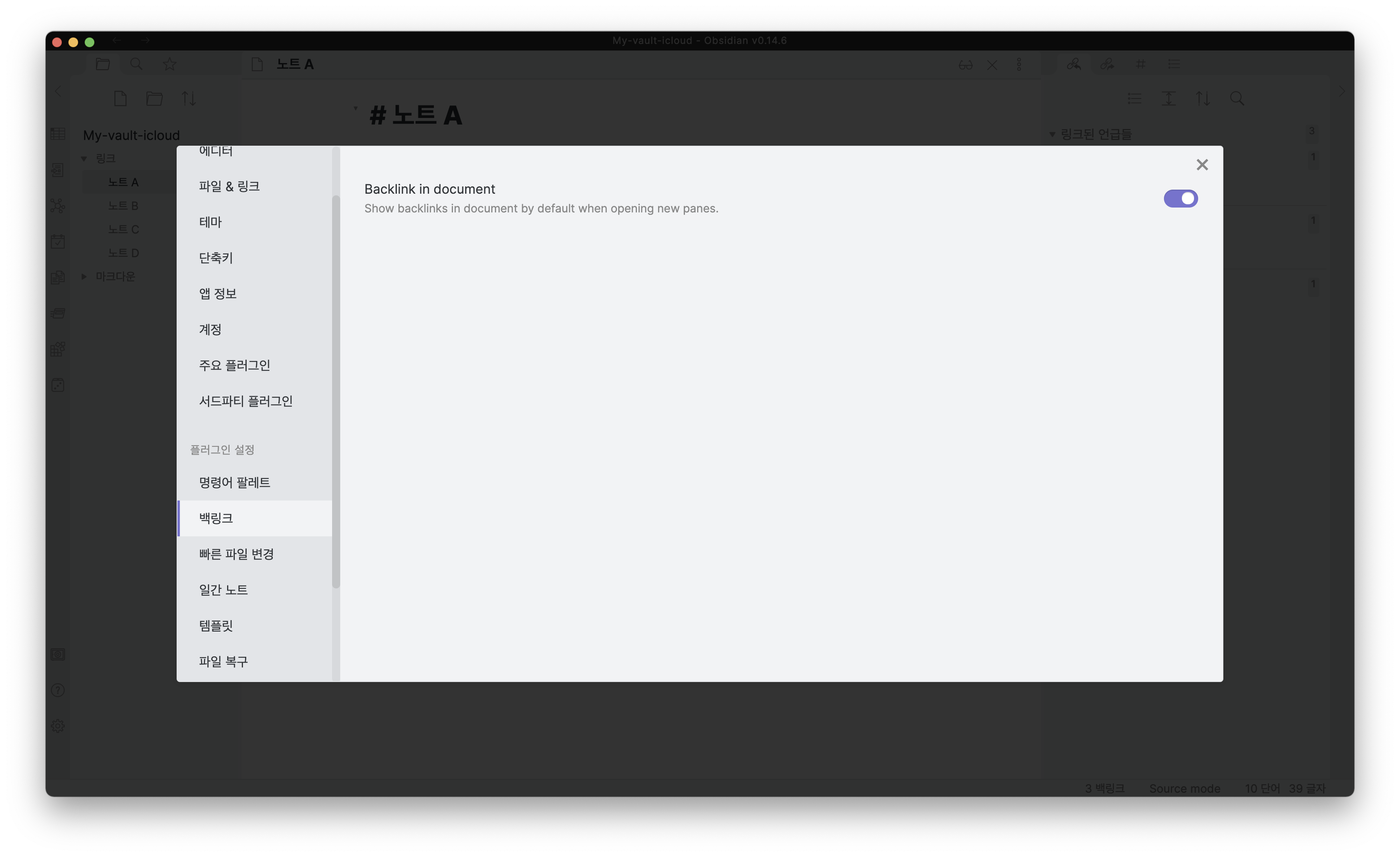 옵시디언의 핵심인 문서와 문서를 이어주는 링크 기능 소개